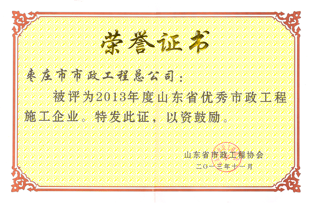 2013年度山東省優(yōu)秀市政工程施工企業(yè)