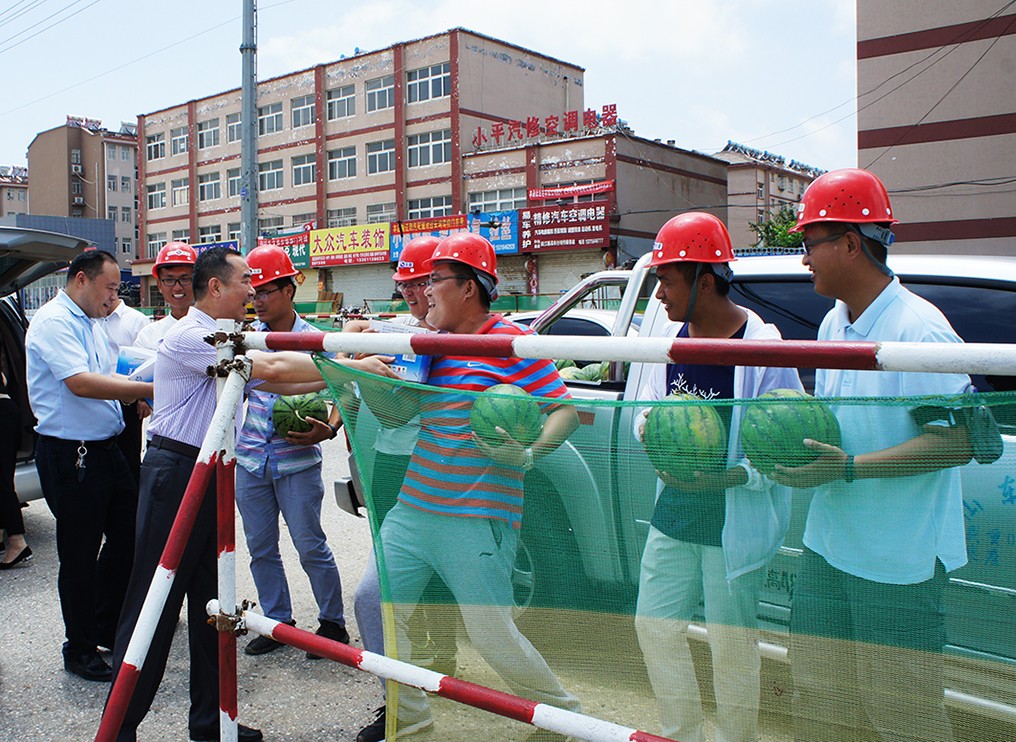 在勝利路、青檀南路、復興路、弘偉建材、機械公司等施工生產(chǎn)現(xiàn)場,夏士泉副總經(jīng)理代表股份公司對各在建工程項目部、生產(chǎn)一線工作人員表示了誠摯的慰問,對高溫酷暑下仍堅守在工作崗位的工作人員表示了衷心的感謝。慰問組每到一處,都與施工人員進行親切交流,仔細詢問施工作業(yè)環(huán)境和工作人員的身體狀況,了解廣大職工的訴求需要,叮囑大家在工作中一定要注意身體,做好高溫下的各項防暑降溫工作,合理安排工作和休息時間,避開高溫露天生產(chǎn)施工,切實做好防暑降溫和安全生產(chǎn)工作。