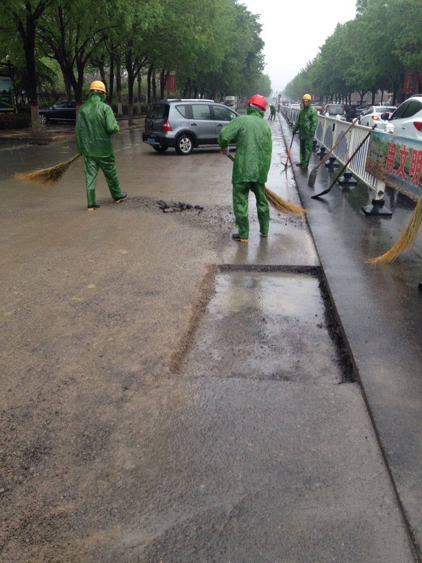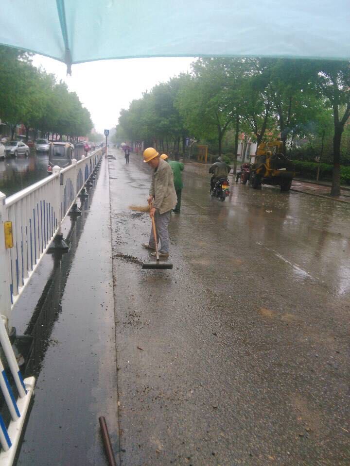 雨情就是命令,面對(duì)突如其來的降雨,工程項(xiàng)目部緊急啟動(dòng)應(yīng)急預(yù)案,組織開展不受降雨影響的舊路面結(jié)構(gòu)層拆除和清掃工作。盡管雨不停地下著,卻澆不息現(xiàn)場(chǎng)施工人員保質(zhì)量、搶進(jìn)度的工作熱情。每個(gè)人都在認(rèn)真負(fù)責(zé)地堅(jiān)守著自己的崗位。就連施工隊(duì)伍工人也受到這種熱烈氣氛的鼓舞,不停地舞動(dòng)著他們手中的工具,清掃著。車輛、行人也在項(xiàng)目部成員的指揮下,井然有序的通行著。額頭上的是雨水、還是汗水也分辨不清,但大家仍精神飽滿,不敢懈怠,都全力為早一天開放交通,為市民出行提供方便而緊張工作。